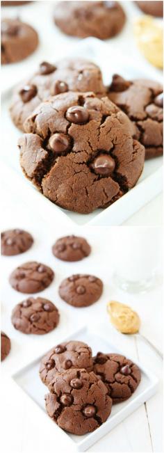 Flourless Chocolate Peanut Butter Cookie Recipe on twopeasandtheirpo... You will never know these rich and soft cookies are gluten-free! They are SO good!