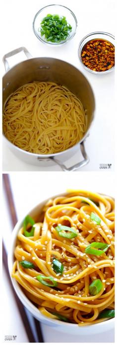 Make with gluten free noodles served hot. Easy Sesame Noodles -- these make the perfect hot (or cold!) side dish, or add some grilled meat and veggies to turn them into a full meal! | gimmesomeoven.com