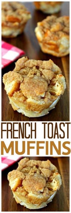 Easy French Toast Muffins•1 Loaf French Bread (Or whatever bread you prefer) •1½ Cups Whole Milk •4 Eggs •⅓ Cup White Sugar •2 Tsp Vanilla •1 Tsp Cinnamon • For the Topping •½ Cup Butter, Cold •½ Cup Brown Sugar •½ Cup All Purpose Flour •1 Tsp Cinnamon