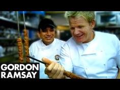 Gordon Ramsay goes to a top Indian restaurant to learn how to cook good tandoori food with the clay oven. For the Cookalong Live show.