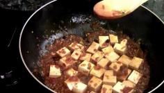 13 oz tofu, 1/2 cup of red onions, 1 tbs of ginger, 1 tbs of garlic, 2 tsp of black bean paste,1 tbs of cooking wine, 1 tbs of soy, 1 tsp fo sambal hot chilli paste, 1 tsp of brown sugar, 1/3 tsp of seasame oil, 1/3 cup of water, sprinkle some green onions, sprinkle some cilantro. www.facebook.com/fortunecooking