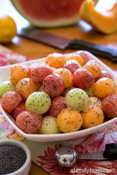 Melon Balls with Poppy Seed Dressing - A light and delicious dressing that is perfect served over fresh melon.