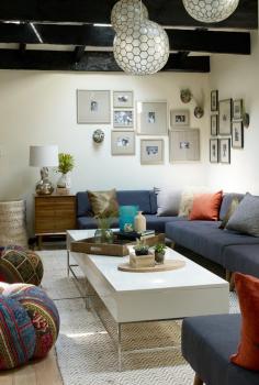 Dig the hexagon pattern ball lights, especially against the black trellis ceiling.