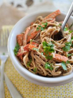 These Soba Noodles with Spicy Peanut Sauce are healthy and super easy to throw together for a quick weeknight dinner. GF+V