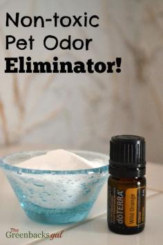 Use this Non-toxic Pet Odor Eliminator to get rid of the pet smells in your home and replace them with the scent of wild orange. Safe to use around dogs.