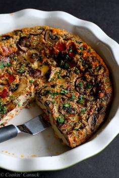 Pancetta and Mushroom Crustless Quiche...And easy and healthy brunch recipe! 111 calories and 3 Weight Watchers PP | cookincanuck.com