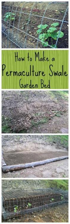 How to Build a Permaculture Swale Garden Bed~ The purpose of a swale is to prevent erosion and to keep water on your land as long as possible. The material is dug out and placed on the downhill side, and the base of the swale ditch is dead level for it’s entire length. Water will collect in the swale, permeating into the ground and providing deep watering for the planting mound that’s created.