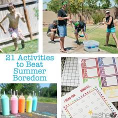 21 Activities to Beat Summer Boredom...Great ideas & free printables!!