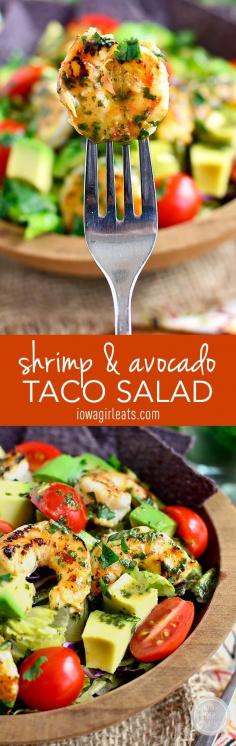 Shrimp and Avocado Taco Salad - Light and refreshing with a shrimp marinade that doubles as the salad dressing!