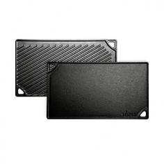 Turn any propane or gas burner into a handy griddle to cook pancakes, bacon, portabellas, and other grilled foods anywhere with the Lodge Logic Double Play Reversible Grill/Griddle. This dual-sided griddle provides a flat side for pancakes, fish filets, and more, and a ridged side for grilling and searing bacon and other meats. This dual option makes it easy to enjoy great cooking versatility from your kitchen or camp stove. Fits over 2 burners. Measures 16-3/4" x 9-1/2". 9/16" deep. Generous grease gutter on ribbed side. Built-in handles. Weight: 8 lbs. Made in USA. Manufacturer model #: LDP3. Dual-sided-enjoy great cooking versatility from your kitchen or camp stove Fits over 2 propane or gas burners Flat on one side, ridged on the other Pre-seasoned cast iron construction-durable and ready to cook out of the box Introducing Lodge Logic: Ready-to-use cast-iron cookware, pre-seasoned for consistent performance! For more than 100 years, Lodge has been perfecting the process of making cast-iron cookware, formulating the perfect metal chemistry to create durable cookware with incredible heat retention and distribution. In the past, the seasoning process was never complete until someone cooked countless batches of fried chicken, catfish and cornbread in the pan or pot to burnish it to a black patina, creating a piece of cookware that could be handed down like an heirloom. Lodge Logic removes the waiting, thanks to a newly-developed seasoning process. Lodge's electrostatic spray system applies a proprietary vegetable oil combination to deeply penetrate the pores of the iron. The result? Seasoned cast-iron cookware from Lodge you can use it right out of the box.