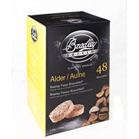 Choose from available flavor options. For use with Bradley smoker. 48 bisquettes produce 16 hours of burn time. Chippings produce continuous smoke at consistent temperature. Can be used for any meat. The secret to the Bradley Smoker is the Bradley Bisquettes - 48 Pack. To produce the bisquettes, the hardwood chippings are bound together using precise quantities, at controlled pressures and densities from chippings of the natural hardwoods and fruitwoods. The flavor of the smoke is determined by the variety of wood being burned. By this method, their burning behavior remains consistent and predictable. Furthermore, by limiting the combustion time to 20 minutes for each bisquette, on top of the electrically heated element, the chippings produce clean continuous smoke at a consistent temperature. These two factors eliminate the guesswork and uncertainty from smoking food, giving you perfect results every time you smoke. The Bradley Smoker, which uses these bisquettes, is fully automatic, burning and dispensing one bisquette ever 20 minutes. At a rate of 3 bisquettes per hour, the smoker has a capacity for 8 hours of unsupervised operation. The only hard thing about it is choosing a smoke flavor! Choose from a variety of flavors! Alder has a distinct, rich flavor that is perfect for seafood, ham or bacon. Mesquite and Hickory have strong flavors usually used for beef or pork. Apple is sweeter and milder, and is ideal for poultry and wild game. About Bradley SmokersBradley invites you to the wonderful world of gourmet food smoking. An exciting adventure awaits you, filled with a realm of endless possibilities for delicious food that will have you coming back for more time and time again. Bradley has has been making food smokers for the restaurant and hotel industry for well over a decade. Many of the finest hotels and restaurants around the world smoke their own foods using Bradley Smokers. Bradley Smokers are engineered to control the smoke in order to produce consistent results, all in a hassle-free design that doesn't demand constant attention. This endeavor led to the development of Bradley Flavor Bisquettes, which provide you with a simple way to add rich and savory flavors to your food, either on your BBQ grill or using your Bradley Smoker.