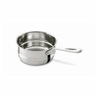 The All-Clad stainless double boiler insert is conveniently designed to fit in your 3 or 4 quart All-Clad sauce pan. By placing it over gently simmering water, you'll gain optimal temperature control of delicate ingredients, such as egg and cream mixtures for creme brulee. The 18/10 stainless steel surface heats quickly and evenly so you achieve desired consistency and results. Confidently melt chocolate or prepare a restaurant-quality zabaglione. The cooking surface doesn't react with foods, so your food retains its natural flavors.