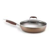 Ultra-durable hard-anodized construction for quick, even heating Twice as hard as stainless steel Restaurant-tested by professional chefs Du Pont Autograph 2 nonstick coated interior, bronze coated exterior Superior nonstick coating offers easy food release and cleanup Safe for use with metal utensils Easy-to-grip Anolon SureGrip handles are stainless steel and silicone Break-resistant glass lid maintains heat and moisture, allows for easy monitoring Dual-riveted and oven-safe to 400 degrees F/206 degrees CNot induction-safe; not dishwasher safe - hand-washing recommended Lifetime limited warranty12-in. skillet includes lid. Convenience while cooking and cleaning up is served up with the Anolon Bronze Nonstick 12 in. Covered Deep Skillet. With a hard-anodized construction that's twice as hard as stainless steel, this durable skillet is your go-to pan for sautéing veggies, flipping pancakes, cooking omelets, and searing steaks, fish, and poultry. The sloped sides are especially helpful for successfully transferring delicate foods, such as pancakes and omelets, from pan to plate. Dupont Autograph 2 nonstick coating on the interior provides excellent food release and quick, easy cleanup. The convenient break-resistant glass lid maintains heat and moisture and makes it easier to monitor what you're cooking. Hand-washing is recommended, as this skillet is not dishwasher-safe; also, not safe for use on induction cooktops. About Anolon CookwareFor those who think recipes are more like suggestions, meet Anolon - a leading brand of gourmet cookware designed to empower food enthusiasts to creatively express themselves in the kitchen. Anolon gives home cooks the ability to cook outside the recipe by offering a wide selection of high-performance, exceptionally crafted cookware, bakeware, cutlery, tools and gadgets that satisfy the needs of each home chef's unique cooking style. Celebrate creativity in the kitchen with Anolon.