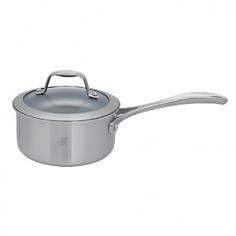 Stainless steel construction; aluminum core. Eco-friendly nonstick cooking surface. Oven- and broiler-safe to 500°F. Dishwasher safe. Available in your choice of sizes. Available in a size to fit your needs, the Zwilling Spirit Thermolon Saucepan with Lid has an eco-friendly, scratch-resistant, and easy-clean nonstick interior. Its aluminum core with stainless steel walls provides even cooking for foolproof meal preparation, and a tempered glass lid helps hold in heat. About Zwilling JA Henckels: JA Henckels has been producing the best in German steel knife design since 1895. Their products are designed for everyday use, giving you the maximum value for your money. This modern company uses innovative technology to create the highest-quality products. They're so sure you'll be satisfied with their products that they back each one with a lifetime warranty. With several lines of quality cutlery and other products, you're sure to find the perfect housewarming or wedding gift, or addition to your own kitchen. About Spirit CookwareThe exceptional line of Spirit Cookware features a high-tech, eco-friendly design that maximizes efficiency and performance. Unlike traditional non-stick cookware that uses chemicals, Spirit Cookware is coated in natural, scratch-resistant ceramic that won't stick or chip and has a notably high level of heat-resistance. Each piece in the Spirit Cookware line is expertly crafted with a magnetic, stainless steel exterior and durable aluminum core that retains heat evenly from rim to rim. Stay-cool stainless steel handles are ergonomic and riveted for durability.