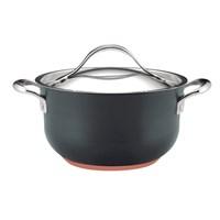 The graceful, wide shape of this Anolon Nouvelle Copper 4-qt. Covered Casserole moves easily from stovetop to oven to table. Whether you're braising a stew in the oven or simmering soup on the stovetop, you'll appreciate the superior performance of this pan. Features: Hard-anodized aluminum is twice as hard as stainless steel and provides exceptional heat distribution. Restaurant tested Autograph 2 Nonstick interior delivers enduring food release and easy cleaning. A layer of aluminum is encapsulated with copper, followed by more aluminum and finished with an impact-bonded stainless steel cap. This unique combination offers outstanding heat distribution and controlled cooking performance. Suitable for all cook tops except induction. Elegant stainless steel lid fits securely to the pans to lock in flavors and nutrients. Refined lid handle has extra clearance for easier and safer lifting. The cast stainless steel handle is attached to the pan using innovative nonstick flush rivet technology - food won't get stuck around the rivets so the pan cleans up easier.