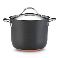 The Anolon Nouvelle Copper 8-qt. Covered Stockpot is where entertaining entrees being. This essential cooking vessel accommodates soups, stews, stocks, pastas and vegetables. Everyone can enjoy favorite dishes from rich chowders to whole steamed lobsters. The copper core double full cap base paired with durable restaurant tested Autograph 2 Nonstick ensures even heat distribution, enduring food releasing performance and easy cleaning. Features: Hard-anodized aluminum is twice as hard as stainless steel and provides exceptional heat distribution. Restaurant tested Autograph 2 Nonstick interior delivers enduring food release and easy cleaning. A layer of aluminum is encapsulated with copper, followed by more aluminum and finished with an impact-bonded stainless steel cap. This unique combination offers outstanding heat distribution and controlled cooking performance. Suitable for all cook tops except induction. Elegant stainless steel lids fit securely to the pans to lock in flavors and nutrients. Refined lid handles have extra clearance for easier and safer lifting. The cast stainless steel handles are attached to the pans using innovative nonstick flush rivet technology - food won't get stuck around the rivets so the pan cleans up easier.