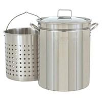 62-QT. Stainless Steel Steam-Boil-Fry - 1160 Bayou Classic's stainless steel stock pots are the better brand of stainless steel stock pots. When compared to other brands, the difference is in the stainless steel grade and gauge. All Bayou Classic stainless steel are made of commercial quality 18/8 gauge stainless steel. The grade is one of the highest (304). These stainless steel stock pots are perfect for cooking indoors or outdoors. Our 24 quart, 44 quart and 62 quart stainless steel stock pots are steaming and boiling stock pots. There is a rim a few inches from the top of the pot which holds the basket up off the bottom for easy steaming of vegetables, lobsters and other foods. The 82 quart through the 122 quart stainless steel stock pots are designed with restaurants and commercial food applications in mind. Features & Benefits: Stainless Steel Stockpot 15.25"d x 18.75"h 0.8mm/20 gauge 2 Perforated Steam-Boil Basket Vented Lid Basket sits 3" above bottom for steaming