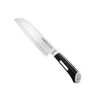 Engineered of German stainless steel. Bar-riveted handle with easy-ID label. Precisely tapered blade retains razor edge. Hand-wash only. Blade measures 7L in. Precision engineered, the Calphalon Precision Series 7 in. Santoku Knife is constructed of German stainless steel that delivers exceptional performance and optimal edge retention. The Precision Santoku Knife features a full tang for superior balance and strength, along with a bar-riveted handle that's conveniently labeled. About CalphalonCalphalon's mission is to be the culinary authority in kitchenwares, enhancing the home chef's food experience during planning, prep, cooking, baking, and serving. Based in Toledo, Ohio, Calphalon is a leading manufacturer of professional quality cookware, cutlery, bakeware, and kitchen accessories for the home chef. Calphalon is a Newell-Rubbermaid company. Calphalon's goal is to give you, the home chef, all the tools you need to realize your highest potential in the kitchen. From your holiday roasting pan to your everyday fry pan, count on Calphalon to be your culinary partner - day in and day out, for breakfast, lunch, and dinner for a lifetime.