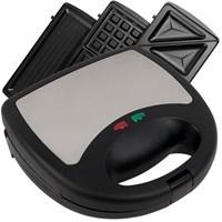 This 3 in 1 Sandwich Panini and Waffle Press is perfect for someone that wants quick hot meals fast. Breakfast, lunch or dinner, this press has you covered. Waffles in the morning, Panini sandwich for lunch, and pizza pockets for dinner. Features Include: Includes 3 Sets of Detachable Heating Plates Plates Have an 8.5 X 5 Inch Cooking Surface Non-Stick Plate Surface for Easy Cleanup Dual Heating Zones for Faster Cooking Power On Indicator Light Ready To Cook Indicator Light Easy Open Cool Touch Handle with Lock 38 Inch Power Cord Measures 9.25(W) X 3.25(H) X 9(D) Inches