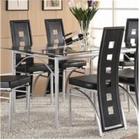 Mixed metal and glass denote contemporary or modern style. The tempered glass top is stronger, more heat-resistant and scratch-resistant than non-tempered glass. The smooth glass table top of this Loz Feliz dining table wipes down easily after each meal, while its matte legs reduce the glare from your favorite overhead lights so you can focus on your food. This table can comfortably sit six chairs around it for larger families, but it's also ideal for intimate dinner events with your best friends. Set includes: One (1) dining table Materials: Tempered glass, metal Finish: Matte silver finish Weight: 70 pounds Dimensions: 59 inches long x 35.50 inches wide x 29.50 inches high