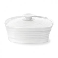 Made of high-quality porcelain. Beautiful rectangular butter dish in white. Durable light-weight and easy to use. Microwave- and dishwasher-safe. Dimensions: 6.25L x 5W x 3.25H inches. Your butter is begging for the Sophie Conran White Covered Butter Dish. This simple porcelain dish easily goes from the counter to the table and back, and looks at home wherever you place it. It'll blend perfectly with your gourmet spread, yet is durable enough for everyday use. Plus, cleanup is easy, simple pop it in the dishwasher. About PortmeirionStrikingly beautiful, eminently practical, refreshingly affordable. These are the enduring values bequeathed to Portmeirion by its legendary co-founder and designer, Susan Williams-Ellis. Her father, architect Sir Clough Williams-Ellis, was the designer of Portmeirion, the North Wales village whose fanciful architecture has drawn tourists and artists from around the world (including the creators of the classic 1960s TV show The Prisoner). Inspired by her fine arts training and creation of ceramic gifts for the village's gift shop, Susan Williams-Ellis (along with her husband Euan Cooper-Willis) founded Portmeirion Pottery in 1960. After 50+ years of innovation, the Portmeirion Group is not only an icon of British design, but also a testament to the extraordinarily creative life of Susan Williams-Ellis. The style of Portmeirion dinnerware and serveware is marked by a passion for both pottery manufacturing and trend-setting design. Beautiful, tactile, nature-inspired patterns are a defining quality of Portmeirion housewares, from its world-renowned botanical designs modeled on antiquarian books to the breezy, natural colors of its porcelain and earthenware. Today, the Portmeirion Group's design legacy continues to evolve, through iconic brands such as Spode, the Pomona Classics collection, and the award-winning collaboration of Sophie Conran for Portmeirion. Sophie Conran for Portmeirion: Successful collaborations have provided design inspiration throughout Sophie Conran's life. Her father, designer Sir Terence Conran, and mother, food writer Caroline Conran, have been the pillars of her eclectic mix of cooking, writing, and interior design. In pairing with the iconic British housewares brand Portmeirion, Conran has created another successful collaboration: Sophie Conran for Portmeirion, an award-winning collection of dinnerware, serveware, and drinkware for the practical, multi-functional needs of contemporary kitchens. Launched in 2006, Sophie Conran for Portmeirion immediately received the Elle Deco Style Award for Best in Kitchens, and two years later, the House Beautiful Award for Best in Tableware. The soulful, tactile beauty of these oven-to-tableware pieces is exemplified by rippled surfaces and edges that evoke a potter's hand. This down-to-earth style is complemented by charming pastels, gentle earth tones, and classic whites and pinks, for a collection that will lighten and enliven contemporary kitchen decors. Though delicate to the eye and touch, these plates and bowls are built for durable performance, with microwave- and dishwasher-safe porcelain that's casual enough for breakfast and elegant enough for eye-catching dinners.