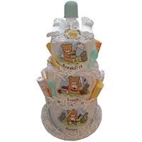 They eat 3 times a day, might as well enjoy it! 32-40 newborn/infant disposable diapers Infant orthodontic printed pacifier Plush 4" long bunny rabbit 9 oz. feeding bottle w/printed design 2- Burt's Bees Baby Bee trial sized products 3- 100% cotton infant receiving blankets 3 coordinating printed feeding bibs Cloth animal finger puppet Pair soft infant booties Brush & comb set w/printed design Fork and spoon set 1 bundle of cotton swabs tied in ribbon "Baby Dots" magnetic star photo frame 4- 100% cotton washcloths