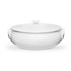 Durable porcelain construction. Modern, organic rim styling and ridges. Round serving dish. Microwave- and dishwasher-safe. Dimensions: 9 diam. x 6.5H inches. The Sophie Conran White Individual Covered Serving Dish was made for potlucks and dinner parties. Crafted of durable porcelain, this versatile dish was designed to go from oven (or microwave) to table. Cleanup is easy, simply pop it in the dishwasher. Just make sure to take it when you go. Everyone will want this dish! About PortmeirionStrikingly beautiful, eminently practical, refreshingly affordable. These are the enduring values bequeathed to Portmeirion by its legendary co-founder and designer, Susan Williams-Ellis. Her father, architect Sir Clough Williams-Ellis, was the designer of Portmeirion, the North Wales village whose fanciful architecture has drawn tourists and artists from around the world (including the creators of the classic 1960s TV show The Prisoner). Inspired by her fine arts training and creation of ceramic gifts for the village's gift shop, Susan Williams-Ellis (along with her husband Euan Cooper-Willis) founded Portmeirion Pottery in 1960. After 50+ years of innovation, the Portmeirion Group is not only an icon of British design, but also a testament to the extraordinarily creative life of Susan Williams-Ellis. The style of Portmeirion dinnerware and serveware is marked by a passion for both pottery manufacturing and trend-setting design. Beautiful, tactile, nature-inspired patterns are a defining quality of Portmeirion housewares, from its world-renowned botanical designs modeled on antiquarian books to the breezy, natural colors of its porcelain and earthenware. Today, the Portmeirion Group's design legacy continues to evolve, through iconic brands such as Spode, the Pomona Classics collection, and the award-winning collaboration of Sophie Conran for Portmeirion. Sophie Conran for Portmeirion: Successful collaborations have provided design inspiration throughout Sophie Conran's life. Her father, designer Sir Terence Conran, and mother, food writer Caroline Conran, have been the pillars of her eclectic mix of cooking, writing, and interior design. In pairing with the iconic British housewares brand Portmeirion, Conran has created another successful collaboration: Sophie Conran for Portmeirion, an award-winning collection of dinnerware, serveware, and drinkware for the practical, multi-functional needs of contemporary kitchens. Launched in 2006, Sophie Conran for Portmeirion immediately received the Elle Deco Style Award for Best in Kitchens, and two years later, the House Beautiful Award for Best in Tableware. The soulful, tactile beauty of these oven-to-tableware pieces is exemplified by rippled surfaces and edges that evoke a potter's hand. This down-to-earth style is complemented by charming pastels, gentle earth tones, and classic whites and pinks, for a collection that will lighten and enliven contemporary kitchen decors. Though delicate to the eye and touch, these plates and bowls are built for durable performance, with microwave- and dishwasher-safe porcelain that's casual enough for breakfast and elegant enough for eye-catching dinners.
