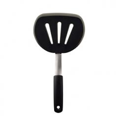 Utensils & Sets - With a simple twist of the wrist, the OXO Flexible Silicone Pancake Turner flips pancakes, crepes and other delicate foods without tearing. With its blend of strong stainless-steel and flexible high-heat resistant silicone, the pancake turner offers thin, flexible edges that glide easily under foods, including fragile eggs and hash browns or burgers and chicken filets, keeping foods in one piece. Flat silicone head cuts soft foods right in the pan without scratching cooking surface. The silicone outer layer is heat resistant to 600 F and safe for nonstick cookware and bakeware. The silicone is bonded to a flexible stainless-steel core for added stability. The silicone utensil offers a comfortable, nonslip cushioned handle grip. Dishwasher-safe. OXO is the leading kitchen tool supplier to the world's gourmet kitchens. Originally engineered to assist the inventor's wife with her arthritic hands, the Good Grips line in OXO kitchen tools is recognized by several national and international o - Specifications Material: stainless-steel, Santoprene, silicone Made in China Model: 1071533 Size: 5"L (11 3/4" with handle) x 6"W Weight: 5 oz. Use and Care Dishwasher-safe Silicone head is heat resistant to 600 F and safe for nonstick cookware and bakeware.