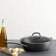 Deep-fry a few chicken wings, sauté a steak, or pop a casserole in the oven. Deep enough to hold hot oil and even certain stews and sauces. Simply Calphalon makes choosing cookware a simple proposition. Everything that counts in cookware: delicious results, good looks, easy clean-up and durability is built right into it. An ideal choice for cooking enthusiasts of every budget, Simply Calphalon is constructed to meet Calphalon's strict standards for performance and durability. Designed with an eye toward simple elegance, capturing the essence of Calphalon style. Features: Vessel Construction: Drawn construction. Crafted from a disc of virtually pure, medium-gauge, hard anodized aluminum for even heating. Hard anodized aluminum exterior will not chip or crack. Key Performance: 2 layers of nonstick coating for extended performance. Cooks with little to no oil or fats. Effortless food release. Non-reactive with foods. Safe for use with nylon, coated or wooden utensils. Handles: Contoured, cast stainless steel with silicone for added comfort and heat-resistance. Double riveted for durable performance. Covers: Tempered glass. Allows easy monitoring of the cooking process. Domed shape returns moisture to foods. Stainless steel bands reinforce glass and complements handles.