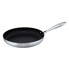 Environmentally friendly cookware. Premium 5-ply construction for uncompromising quality. Non-stick ceramic titanium coating safe for use with metal utensils. Stay-cool stainless steel handle attached with patented locking system. Oven- and broiler-proof up to 500 degrees F. Suitable for all cook tops except induction. Dishwasher safe. Includes 1 fry pan in your choice of size. Eco-friendly cookware from SCANPANSCANPAN wants to make a difference in your kitchen and in the environment. They manufacture cookware with respect for people's well-being, using environmentally responsible methods and materials. They strive to minimize the environmental impact of their production process from their factory in Denmark by using stainless steel and 100% recycled aluminum. Using recycled aluminum saves a lot of waste (85.4 kilos per 1 kilo of aluminum, in fact) and creates less waste than other materials. Recycling aluminum also uses considerably less energy in the production process compared to new aluminum. SCANPAN was the first cookware manufacturer to bring environmentally friendly, PFOA-free products to the market. Today, all SCANPAN products are free from both PFOA and PFOS, preventing the transfer of harmful chemicals to your cooking. They achieve this and manage to deliver the best performing cookware on the market. About SCANPANA manufacturer of eco-friendly cookware, SCANPAN is one of the world's leading manufacturers of non-stick products and has been producing Danish kitchenware of the highest quality and durability for over five decades. Sticking to their roots in traditional craftsmanship, SCANPAN creates functional and timeless tools for modern kitchens. With a brand that's constantly evolving, they're proud to be at the forefront of innovation and technology. Since their inception in 1956, their hand cast aluminum products with patented coating have formed the core of their business. To this day, they still cast all of their own non-stick aluminum products at their own factory in Denmark. Size: 12.5 in.