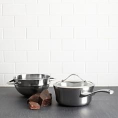 Whether you're preparing a meaty marinara or a delicate sauce, this saucepan with double boiler insert is designed for easy cooking, easy cleanup and maximum performance. Heavy-gauge aluminum construction guarantees even, efficient heating. The double boiler insert is ideal for melting chocolate and cheeses. Bring stunning, contemporary design to your kitchen with Calphalon Contemporary Stainless cookware. Crafted from lustrous, brushed stainless steel, clean lines and curvaceous silhouettes - Contemporary Stainless epitomizes the soul of modern style and with professional performance and dishwasher-safe convenience. Features: Vessel Construction: Crafted from two metals - a heavy-gauge, full aluminum core encased between two layers of stainless steel delivers excellent heat conduction. Key Performance: Highly reflective surface offers maximum visibility. Superior conductivity and even heating for excellent browning and control of the cooking process. Exterior: Brushed stainless steel retains like-new appearance. Interior: Satin stainless steel is non-reactive with foods. Reflective surface allows for easy monitoring of foods as they cook. Durable, non-porous surface. Safe for use with all utensils. Handles: Long, cast stainless steel handles stay comfortably cool. Double riveted for durable performance. Lightweight, comfortable ergonomic design. Induction Capable Covers: Tempered glass. Allows easy monitoring of the cooking process. Domed shape returns moisture to foods. Wide stainless steel bands reinforce glass.