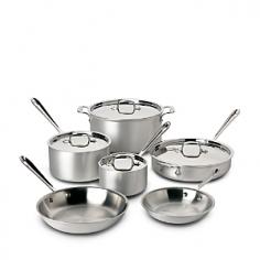 The All-Clad Master Chef 2 cookware set re-envisions the legendary Master Chef collection with a contemporary edge. Lightweight designs and clean lines bring the efficiency of a commercial kitchen to your home, and the brushed aluminum pots are visually pleasing enough for display on open shelving, cooking islands or hanging racks. We know that safety is a concern anytime you're in the kitchen, and the stay-cool handles on these pots and pans will keep your fingers from harm as you cook and transfer foods. The stainless steel interior ensures food is cooked evenly, allowing you to prepare sophisticated meals that involve searing, simmering, sauteing, steaming or blackening. The All-Clad 10-pc. Master Chef Set includes 8- and 10-inch frying pans, 1.5- and 3.5-quart saucepans, a 3-quart saute pan, an 8-quart stockpot and four lids. The cookware is safe for use on a variety of surfaces, including glass- and ceramic-top stoves. Each pot is lightweight, ensuring you can transfer them from stove to counter to sink even when they are filled with food, water or stock, making it easy to serve food or clean up after a meal. Best Used For: Soup, steak, pan-fried meats and veggies, beans, pasta, eggs, pancakes and sauces. Features: Lifetime warranty18/10 stainless steel construction Brushed aluminum exterior Stay-cool handles