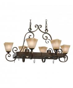 Classic Mediterranean style with a casual look Elegant flat scrolling arms for a unique, handcrafted feel Square Antique Marbled glass Matching ENERGY STAR fan A multi-functional unit that illuminates your kitchen and provides access to your cookware Beautiy and organization for the welcoming kitchenADA: No Box Weight: 43.65 Bulb Included: No Canopy Backplate Dimensions: 16" W x 7" H x 2" E Chain Length: 2 x 10' Collection: Meridian Color Class: Medium Bronze Dark Sky: No Energy Star: No Extension: 26.5 - 28.5" Finish: Golden Bronze Fixture Type Function: Chandelier Glass Shape: Sq. Antique Marbled Glass Glass Height: 5" Glass Width: 6.5" Height: 22.5" Max Wattage: 60W two 50W Number of Lights: 8 Style: Traditional Suggested Room Fit: Kitchen Title 24: No UL-Listing: Dry Uses Bulb Type: Incandescent medium base two R20 medium base Width: 39.5~42" Wire Length: 12'3-way switch Dual-chain canopy is included with all dual-chain hanging fixtures A fan brace is recommended when installing fixtures over or carrying over 50lbs.
