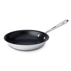 The All-Clad Stainless Steel Non-Stick Fry Pan - now you can have the same cookware favored by chefs worldwide, in your own kitchen! ; A kitchen staple in a variety of sizes, the fry pan is ideal for searing, browning and pan frying everything from eggs to meats. ; The pan features a flat bottom and flared sides that make tossing foods effortless, and allows for easy turning with a spatula. ; All-Clad is designed to distribute heat quickly and evenly, preventing hot spots and sticking. ; Shiny stainless steel exterior gives a professional appearance to cookware. ; Aluminum core assures fast heating and quick response to temperature changes. ; Nonstick 18/10 stainless steel interior retains heat evenly for fewer hot spots, and does not discolor, react with food, or alter flavors. ; Stainless steel handle is permanently secured with stainless steel rivets, and is ergonomically designed for safe handling and a confident grip. ; Suitable for all types of stove tops, including induction. ; Though the pan is nonstick, All-Clad recommends a little fat or oil during cooking for flavor development. ; All-Clad does not recommend any aerosol cooking spray on its nonstick cookware. ; Safe for use with nylon, coated or wooden utensils. ; Hand wash. ; Oven safe up to 500° F. Please do not use under broiler. ; Lifetime manufacturer's warranty. Complete manufacturer warranty information provided in product packaging. ; Dimensions: 8 diameter x 1.87 deep. ; Weight: 3 lbs. ; Made in the USA.