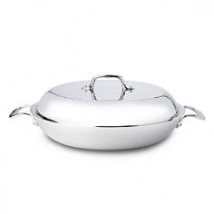 Braisers & Paella Pans - This braiser is terrific for pot roast, osso buco or bean dishes and braised vegetables. Designed for slow cooking in a small amount of liquid, it has a wide, flat bottom for quick browning, sloped sides to concentrate the cooking liquid, and a domed lid to capture flavor and nutrients. With low-profile, space-efficient loop handles, this beautiful braiser can go from stove top to oven to table. The All-Clad stainless-steel collection of cookware for ultimate cooking convenience features redesigned ergonomic handles and All-Clad brand and measurement/capacity on the underside of each pan for easy identification. Lids made in the USA. All-Clad's leading cookware line is brilliantly styled with a hand-polished gleaming stainless-steel finish that many of the world's professional and home chefs prefer. The 18/10 stainless-steel interior will not react with food, leaving the pure taste you desire. Magnetic exterior is perfect for induction cooktops. Made in the USA. Product Features 3-ply bo - Specifications Model 8701004441 13" Dia. (16 3/4" w/handles) x 2 1/2"H (5 1/2" w/lid) Base: 8 3/4" Dia. Weight: 5-lb. Made in the USA Lifetime manufacturer warranty All-Clad Cookware Lifetime Warranty: From date of purchase, All-Clad guarantees to repair or replace any item found defective in material, construction or workmanship under normal use and following care instructions. This excludes damage from misuse or abuse. Minor imperfections and slight color variations are normal. Care and Use Dishwasher-safe Before using for the first time, wash in hot, soapy water with a sponge or dishcloth. Rinse in hot water and dry thoroughly. Placing pots on low heat for one or two minutes before adding foods. Preheat pot or pan for one to two minutes over low or medium heat. To avoid the formation of small white dots or pits, bring liquids to a boil before adding salt, then stir well. Or, add salt after food has started to co