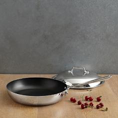 With its sculpturesque form and patented bonded construction, the All-Clad Stainless French Skillet blurs the line between art and science. A precisely-contoured heel and slightly deeper sidewall facilitate turning and flipping. Bonded layers of 18/10 stainless steel and aluminum provide ideal balance, handling weight, and supremely-even heat diffusion. For sauteing, frying, and general versatility, the All-Clad Stainless French Skillet is the true culinary artist's latest inspiration. Features: Tri-ply construction produces highly-responsive conduction and even heat distribution: 18/10 Stainless Steel/Aluminum/Magnetic Stainless Steel. Riveted stainless steel handles. Made in the USA. Induction compatible. Newest Improvements: Laser-etched pan engraving with logo and capacity markings. Enhanced stick handle, same classic design. Premium, upgraded packaging.