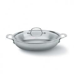 You'll get a lot of use out of the versatile Calphalon 12-in. Stainless Steel Everyday Pan. Its sloping sides resemble a skillet, so you can use this pan for sautéing vegetables, caramelizing onions and making omelets. Its low-profile sides make it great for oven-to-table dishes such as paella, risotto and pasta dishes. Toss you homemade tomato sauce with your penne in this stainless steel pan just before serving. This pan features handles that stay cool even when you cook over a high heat. Because there are two handles, you'll be able to carry the pan easily even when it's full. The tri-ply construction, with an aluminum core housed in two layers of stainless steel, allows the pan to conduct heat well. You'll be able to control the temperature of the pan with a simple adjustment on your stove. Because the pan heats evenly, your food will cook perfectly, with no burned spots and cold spots. This durable pan can be used on any type of stovetop, including gas, electric, induction, ceramic and halogen. You can even use the pan in the oven or under your broiler. Sear your meat on the stovetop and then transfer it to the oven for the remainder of the cooking time. Thanks to its durability, you can use all types of utensils, even metal ones, with the pan. With its dome shape, the lid returns moisture to your food as the steam cools. Run the pan and the lid through the dishwasher for easy cleanup.