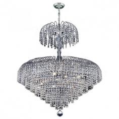 This stunning 14-light Crystal Chandelier only uses the best quality material and workmanship ensuring a beautiful heirloom quality piece. Featuring a radiant chrome finish and finely cut premium grade crystals with a lead content of 30%, this elegant chandelier will give any room sparkle and glamour. Worldwide Lighting Corporation is a privately owned manufacturer of high quality crystal chandeliers, pendants, surface mounts, sconces and custom decorative lighting products for the residential, hospitality and commercial building markets. Our high quality crystals meet all standards of perfection, possessing lead oxide of 30% that is above industry standards and can be seen in prestigious homes, hotels, restaurants, casinos, and churches across the country. Our mission is to enhance your lighting needs with exceptional quality fixtures at a reasonable price. Finish: Polished Chrome Crystal Color: Clear 30% Premium Full Lead Crystal (14) 60W E12 Incandescent Candelabra Bulb(s) Bulb(s) Not Included Total Watts: 840 Voltage: 110V - 120V Number of Tiers: 1 Beautiful Polished Chrome finish and dressed with precision cut and polished 30% Full Lead Crystals for maximum brilliance and sparkle From the Empire Collection Accommodates up to 14 60-watt maximum (40-watt recommended) candelabra base incandescent E-12 bulb (not included) Solid Brass Frame in Chrome Plated Finish and 30% Full Lead Crystal Includes 72-in adjustable chain for hanging UL and CUL Listed to US and Canadian safety standards For Dry Locations only (Dry Locations include kitchens, living rooms, dining rooms, bedrooms, foyers, hallways and most areas in bathrooms) Hardware included Assembly instructions and template enclosed for convenient setup (Professional installation is recommended) 1 Year Limited Manufacturing Defects Warranty Hardwired UL Listed, cUL Listed, CSA Listed Style: Transitional Part of the Empire Collection Warranty Info: 1 Year, Worldwide Lighting Corporation warranties products to be free from defects for a period of one year following shipment. Warranty is and void if merchandise is not installed according to factory instructions, NEC guidelines, and applicable building cOverall Dimensions: 30"(D) x 30"(W) x 32"(H)Diameter Range: Diameter from 24" to 42"Item Weight: 46 lbs. Please note that this product is designed for use in the United States only (110 volt wiring), and may not work properly outside of the United States*Use of this product will expose you to lead, a chemical known to the State of California to cause birth defects or other reproductive harm. Not intended for food use.