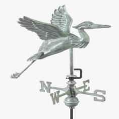 Heading away from his marsh pond nest this Great Blue Heron is ready to alight over your deck garden or yard. Our Good Directions' artisans use Old World techniques to handcraft this fully functional garden weathervane that's unsurpassed in style quality and durability. A great gift for wildlife enthusiasts! Expertly handcrafted by Good Directions artisans using Old World techniques. Blue verde copper provides an attractive patina. Includes easy-to-assemble all-weather garden pole solid brass directionals and copper spacer balls. Makes a great gift for wildlife enthusiasts. Measures 16" L x 18" H x 16" wingspan - ideal for any deck garden or yard.