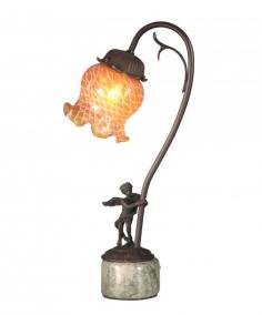 DT3291: Features: -Table lamp-Number of lights: 1-Shade material: Hand blown art glass-On/off socket-Inline switch-16.75 H x 6 W x 6 D, 5.95 lbs. Construction: -Marble or metal construction. Color/Finish: -Finish: Antique bronze paint. Specifications: -Bulb type: 25W E12 bulb.