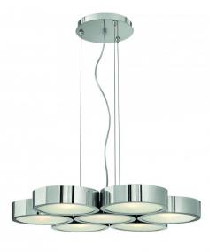 Features: Includes etched glass shade Designed to cast light in a downward direction Made of Aluminum UL / cUL Listed for Dry Locations Requires (7) 60 watt G9 base bulbs (Included) Lamping Technology: Bulb Base - G9: A bi pin or bipin socket, G9 bulbs have a pin spread of 9mm and are used mostly in 120V or 230V fixtures with halogen bulbs. Compatible Bulb Types: G9 Bulb base uses primarily a Halogen bulb but is also available as Fluorescent, LED, and Xenon / Krypton. Dimensions: Height: 3.25 (measured from ceiling to bottom point on fixture) Width: 24.25 (measured from furthest point left to furthest point right on fixture) Canopy Diameter: 7.5 Wire Length: 144 Chain Length: 120 Product Weight: 14 lbs Electrical Specifications: Bulb Base: G9 Bulb Type: Halogen Bulb Included: Yes Number of Bulbs: 7 Watts Per Bulb: 60 Wattage: 420 Voltage: 120v Compliance: UL Listed - Indicates whether a product meets standards and compliance guidelines set by Underwriters Laboratories. This listing determines what types of rooms or environments a product can be used in safely.