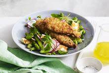 Chicken breast strips with asparagus & haloumi salad