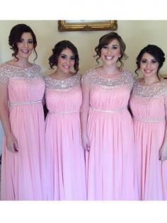 Trapèze/Princesse Col ras du cou Sans Manches Longueur ras du sol Perles Mousseline Robes de demoiselle d'honneur