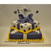 2 Tier 21st Birthday Purple and Gold Present Cake